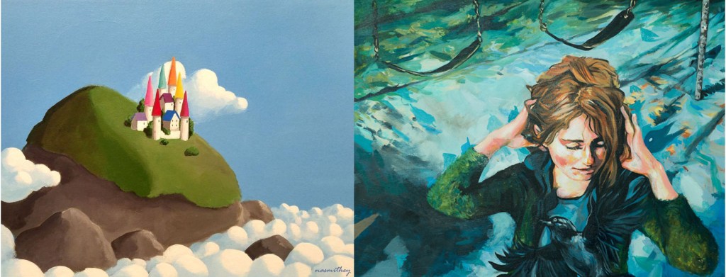 A selection of my most llama themed paintings up on display in the large hallway of the Oak Bay Neighbourhood Learning Centre, along with the enchanting and castle-filled works of fellow painter Paula Nasmith.