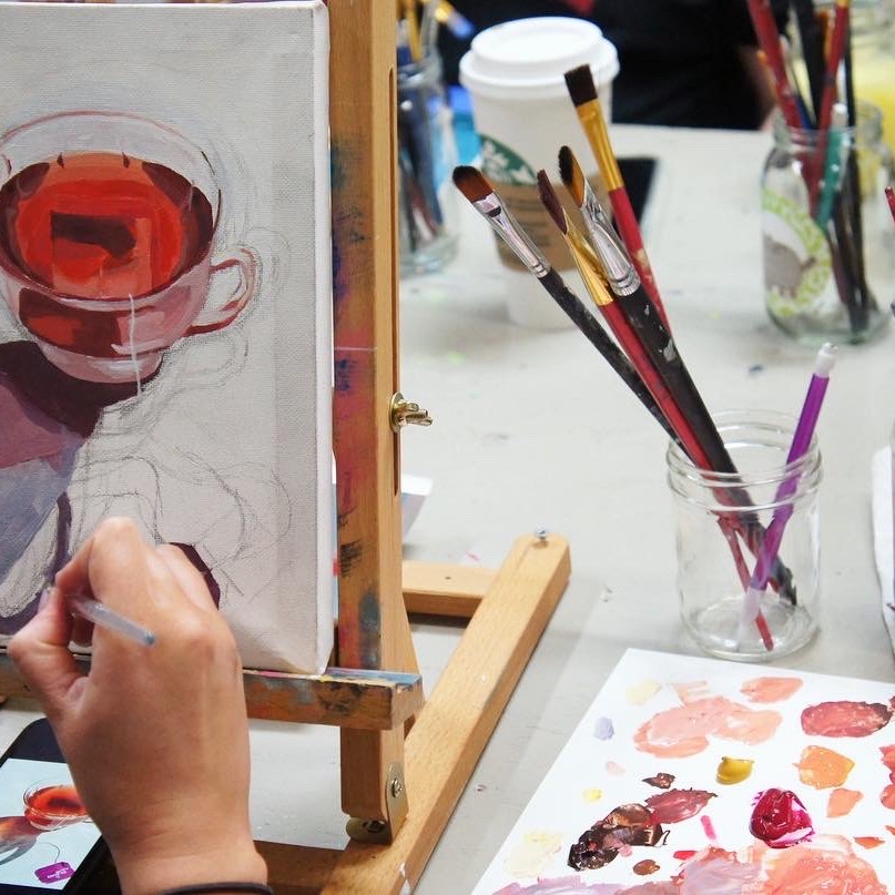 PREREQUISITE REQUIREMENT: This workshop will be building upon painting basics as introduced in any of my beginner level painting workshops. Thusly a prior acrylic painting workshop at the studio (ideally Acrylics 1) is required.